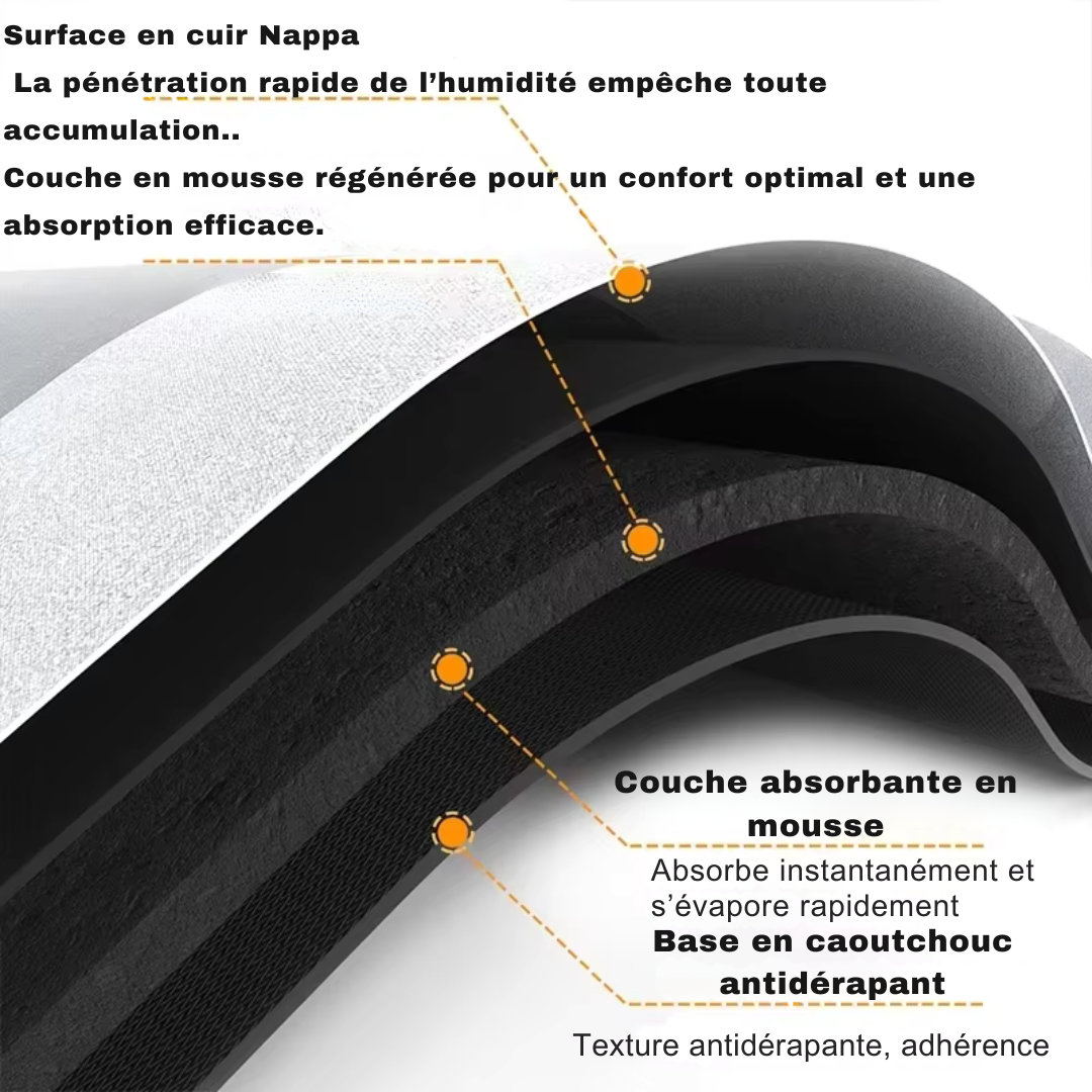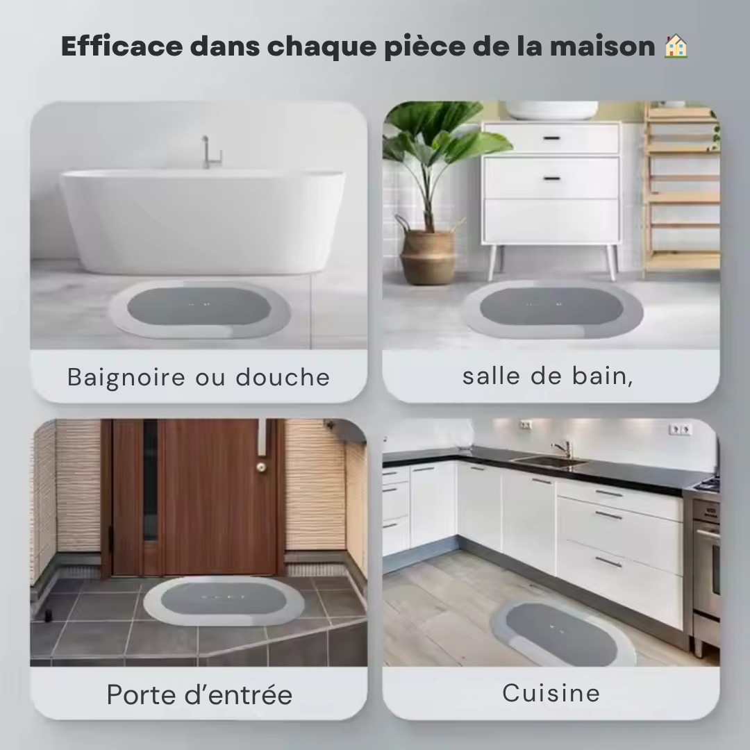Grâce à sa technologie innovante 🧪, il absorbe l’eau en quelques secondes 💧, évitant les flaques après la douche 🚿 ou les sols mouillés les jours de pluie 🌧️.